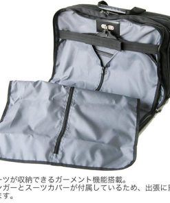 スーツのシワを防止しながら持ち運べるガーメントバッグ。