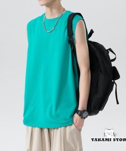 袖が大胆にカットオフされたデザインです。トレーニング中にも邪魔になりません。