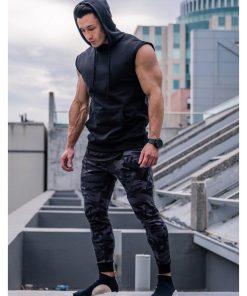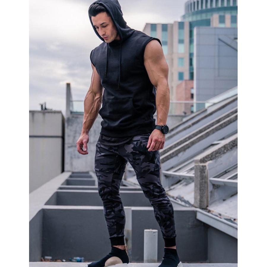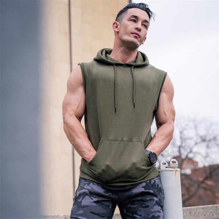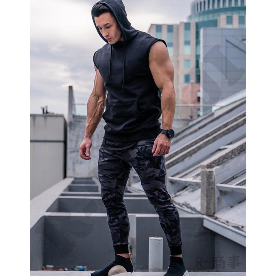 タンク メンズ トレーニングウェア フード付き カットオフ ノースリーブ 袖なし パーカー 無地 カジュアル スポーツ ランニング