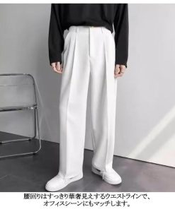 メンズ 春 ワイド パンツ ワイドパンツ 夏 秋 ワイドスラックス ダブルタック 通勤 ロング丈 ストレート 長ズボン スラックス ビジネス キレイめ