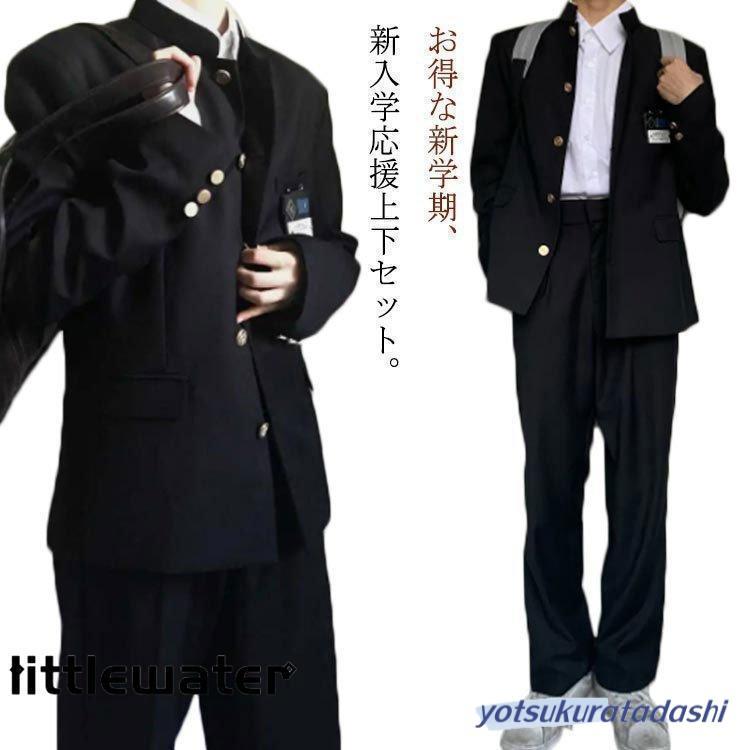 学生服上下セット男子制服学ラン詰襟ラウンド襟上着ズボン2点セットメンズジュニアボーイズスクールジャケットスラックスウエ