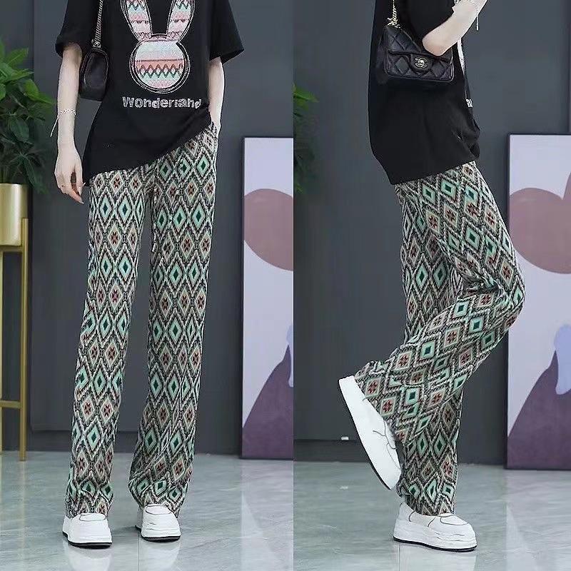 ロング丈パンツ ワイドパンツ チェック柄 パンツ ズボン ウエストゴム入り レディース ボトムス