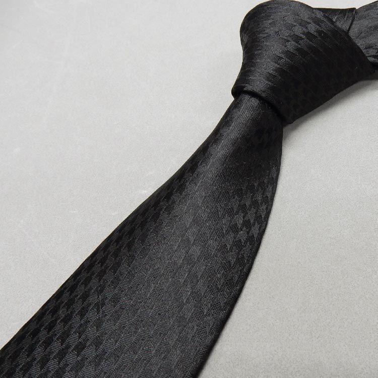 西陣織 フォーマルタイ チーフ付 黒 千鳥格子 シルク100% 日本製 礼装 葬式・葬儀・告別式 ポスト投函便送料無料 njc44-BK