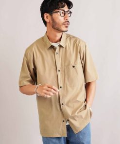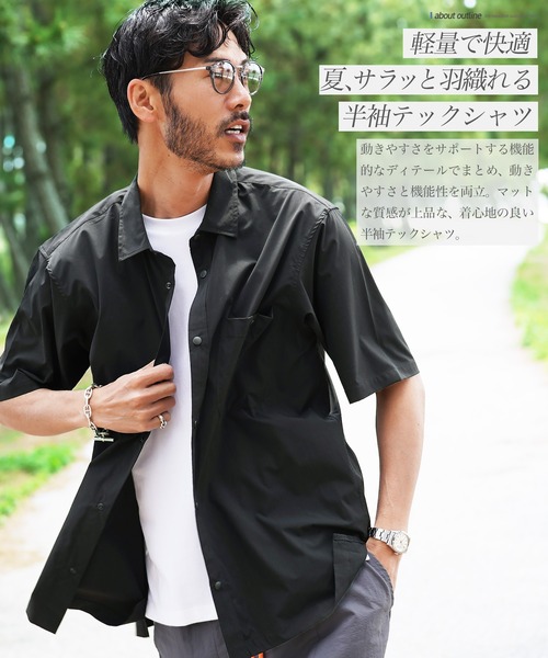 JIGGYS SHOP シャツ ポリエステルタフタ レギュラーカラー スナップボタン 半袖シャツ メンズ